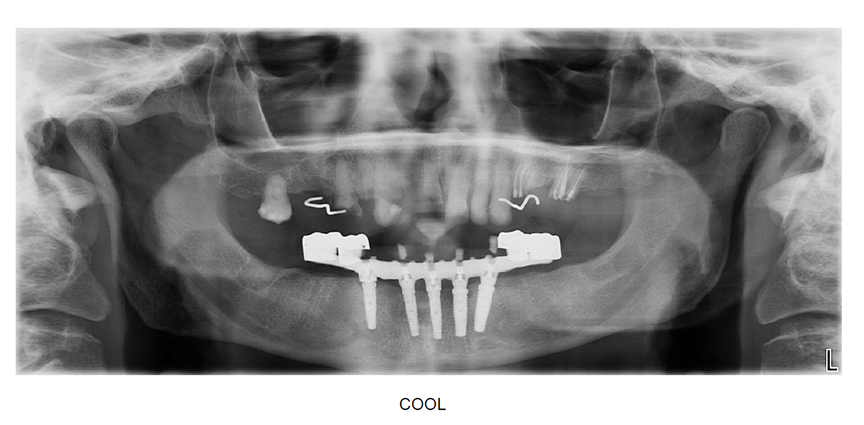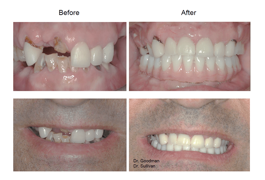 Before and After – full mouth implant reconstruction titanium bar and acrylic